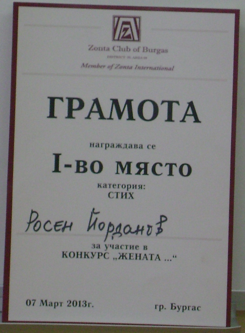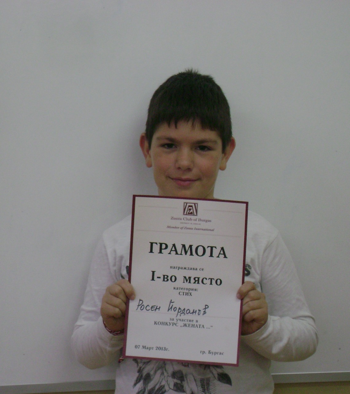 И още една награда за класа- Първо място за стихотворението "МАМА" автор: Росен